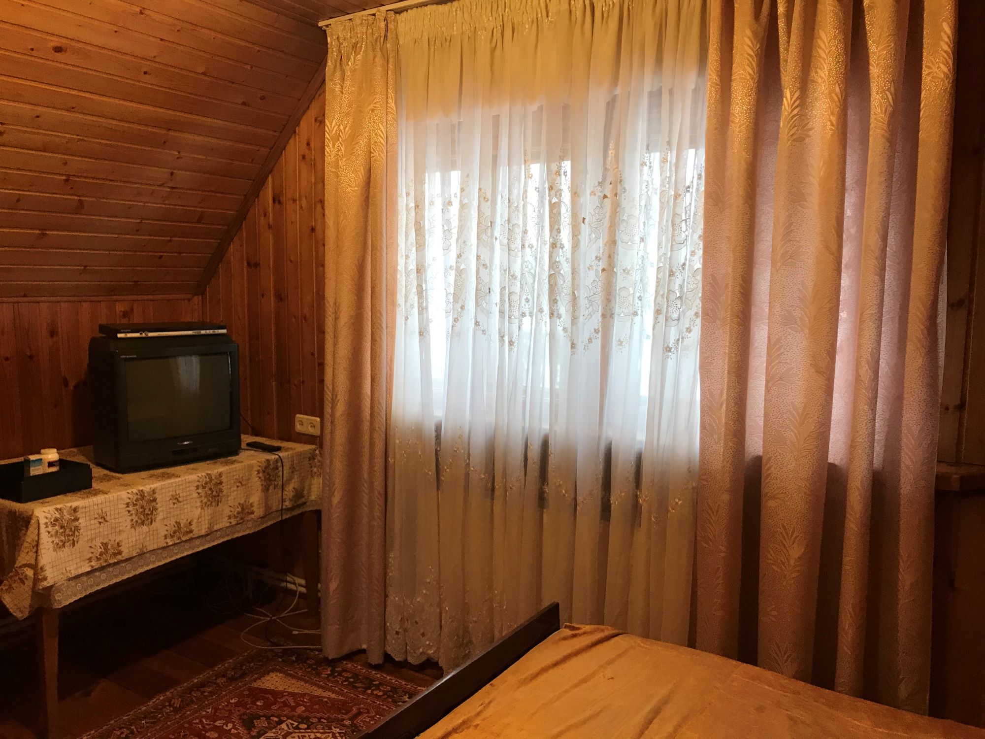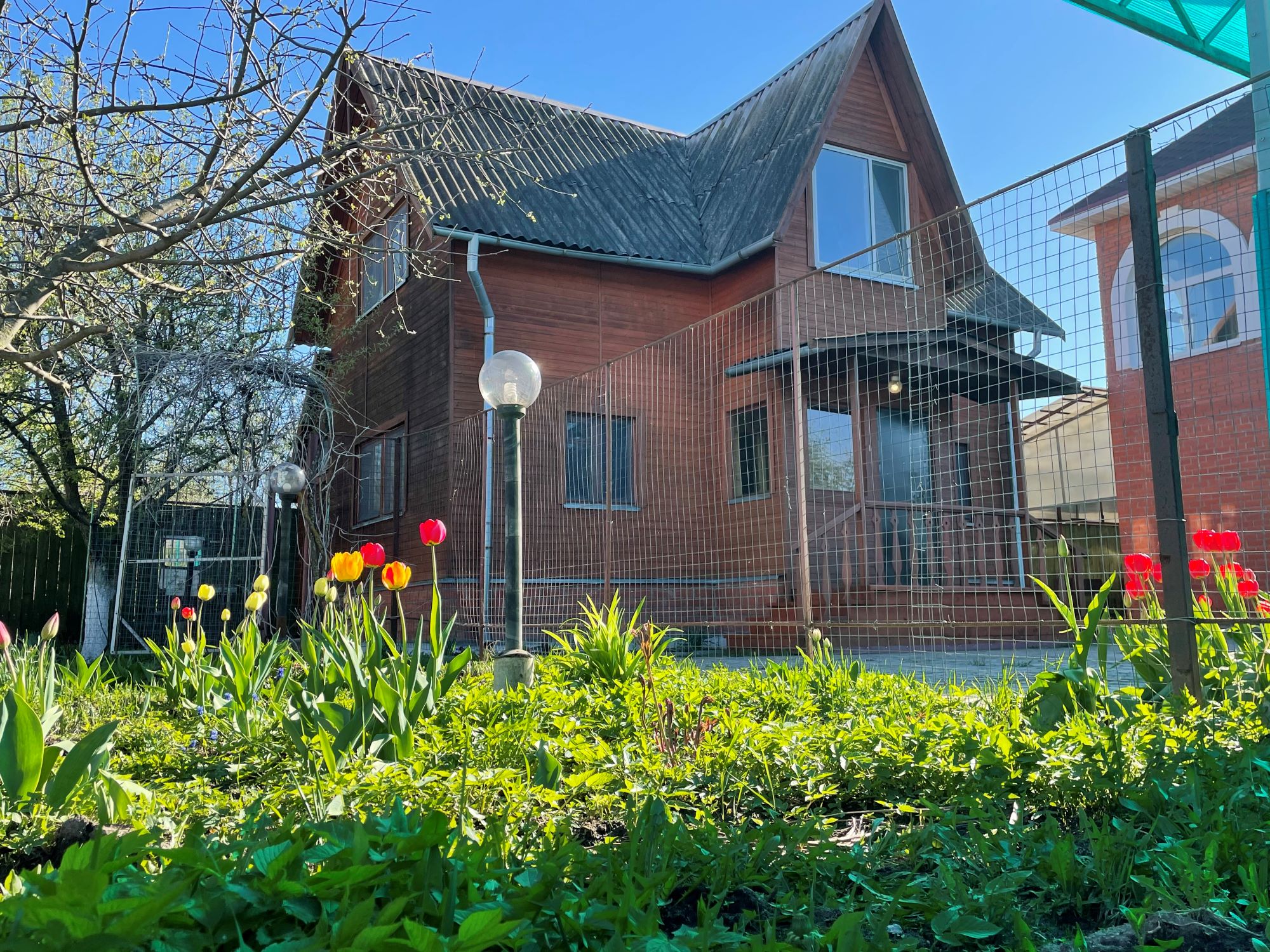 25 километров от МКАД. На общей территории с хозяйским домом, который стоит отдельно. Есть место где ставить машину на участке. Рядом с домом, в прямой видимости находится церковь. В 5 минутах ходьбы река Пахра, в 10 минутах озеро с платной рыбалкой. В последнее имеется освещенная детская площадка, спортивные тренажёры, мини футбольное поле, поле для волейбола. Так же внутри посёлка есть продовольственный магазин. В 5 минутах на машине Дикси, Пятерочка, аптека.